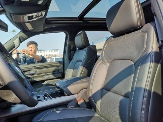 细节方面:道奇公羊做工则完全摆脱了美式的粗糙感,边缘、接缝都处理的很精细。真皮座椅各自独立,配有加热、按摩等舒适功能,每个座椅独立配一个操控手柄,各项功能由乘坐者自己控制。道奇公羊皮卡车型全部座椅均采用真皮包裹,前排还配备了十分实用的运动座椅。