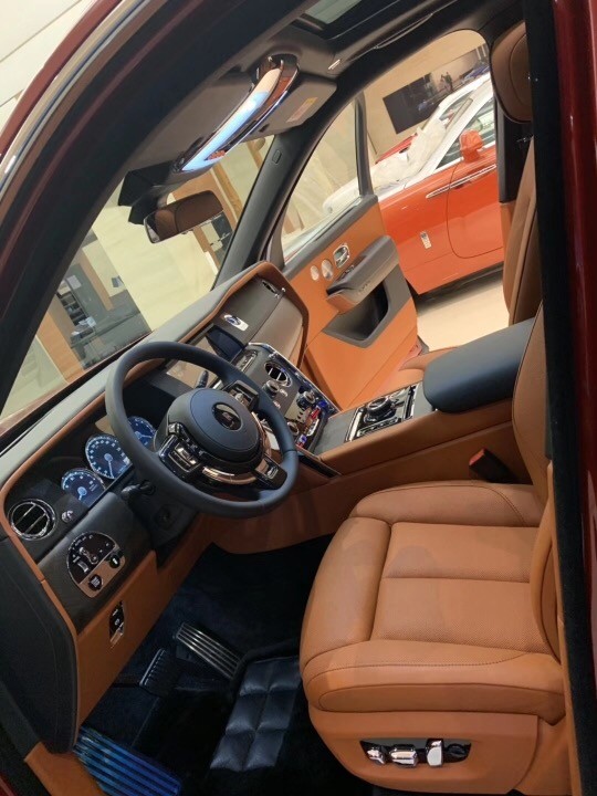 库里南的内饰遵循了劳斯莱斯一贯的设计风格,造型经典复古但不失科技感,大量实木饰板的采用,提升了内饰的档次感。而大面积真皮包裹的设计,则成功的营造出奢华舒适的内饰氛围。仪表盘的设计较为古朴,内部指针清晰可见,外圈还配备有劳斯莱斯珠宝般的装饰环。方向盘沿用了经典的三辐式造型,但是整体设计更加小巧、厚实,并且内部包裹有可加热的柔软材质。