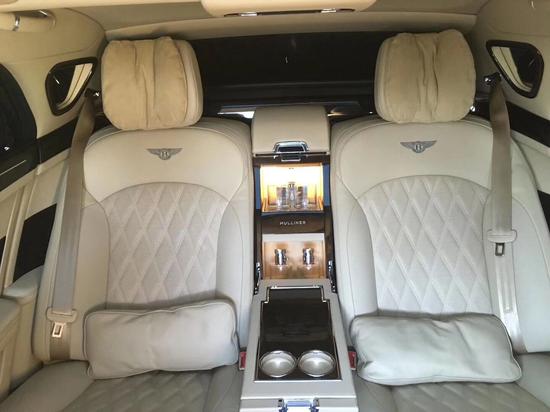 两个“航空级”座椅加上电动腿托的加入,腿部也不会受到限制,让乘坐更加舒适。中控台纵贯座舱,其手工制作的精美饰面巧妙地容纳了诸多存储功能。中央通道内隐藏了两块小桌板,面积足够大,防滑性能也很好,使用也非常方便。两块10.2英寸的后排多媒体娱乐显示屏不仅带有伸缩功能,还可独立拆下,作为一个平板电脑使用,插上SIM卡即可浏览网页,功能及其强大。后排车窗均配有隐私遮阳帘,保证了您后排的私密性,坐在其中让您的身心享受真正安静的空间。