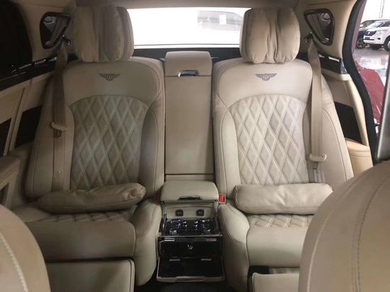 内部充分利用额外的后排空间,宾利研发了航空式电子腿托,组装在两个后排座椅的基座上。腿托可以向外延伸和旋转,为后排乘客提供直立、放松、倾斜等不同座椅位置的乘坐体验。在慕尚长轴距版的两个后排座椅之间,有一个控制台,还提供各种实用功能,例如USB接口、笔架、杯托和玻璃盖储存区。