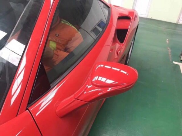 虽然在车身尺寸及造型上很多人会把488GTB误认为是458,但实际在空气动力设计上488 GTB做了众多改进,尾部的可变扩赛器等设计都是为了能降空气动力学效果推向极致的设计,488 GTB符合空气动力学的底盘通过加速空气流动,减少压力。使得汽车被“吸”到地面,保持阻力不变的同时增加了下压力。这样可使汽车在250 km/h时生成325 kg的整体下压力。
