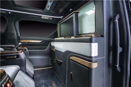 19款丰田埃尔法墨麟版搭配乘客舱一键式电动雾化玻璃隔断,紫檀木功能小吧台,飞机头等舱首长座椅,可以180度展开并且带有三项座椅记忆功能,还可以进行通风、加热、气动按摩等功能,桌板也变为伸缩航空滤纸小桌板,并带有二级折叠功能。整车搭配顶级之檀木,加上极光雕刻樱花元素地板,加上奢华酒柜,后方还有超大储物后备箱,多功能储物格,氛围灯加上360度旋转阅读灯,让整车奢华感倍增。无论是出行还是接待,专属的私人空间都可以尽显奢华,也是成功人士身份的代表。