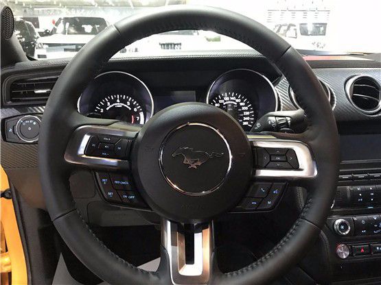 18款野马这次全部改为真正的铝合金面板,甚至连方向盘上的银色部分。也是金属材料,用强烈的金属感来衬托外形的肌肉感,同时能够满足现代时尚的审美观。新车中控台中央增加了一个大尺寸的屏幕,下方按键的排列也有所调整,车内散发的那种稳重硬朗的气质,让人很容易感受得到。圆形的空调出风口可以向任意角度送风,时尚又实用,此外,新车还将搭载福特与微软共同开发的SYNC系统。