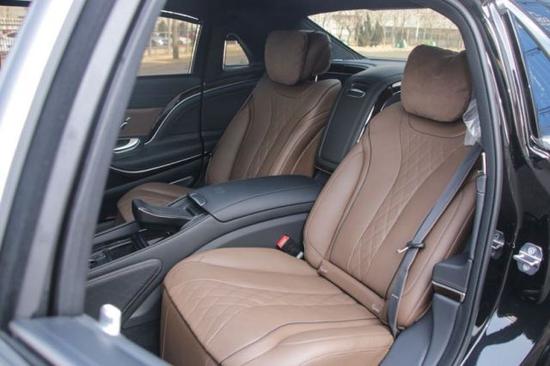 内饰方面:新一代梅赛德斯-迈巴赫S级轿车的车主通常会坐在后排,与之对应的是后排左右两侧标配的行政座椅。借助特殊的调节系统,后排座椅提供了超乎寻常的独特舒适感。值得一提的是,在腿部空间和座椅位置不变的情况下,靠背可单独调节。同样全系标配的是后排腿部空间扩展组件,通过对系统的调节,右侧后排座椅在腿部空间方面比常规座椅的最大位置还要多出77毫米。后排座椅功能均通过车门上经典的梅赛德斯-奔驰方式的控制板来操作。当然,后排中央扶手中带有两个杯座、多处储物空间及木饰。