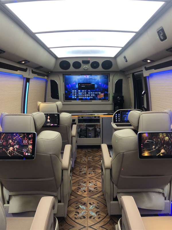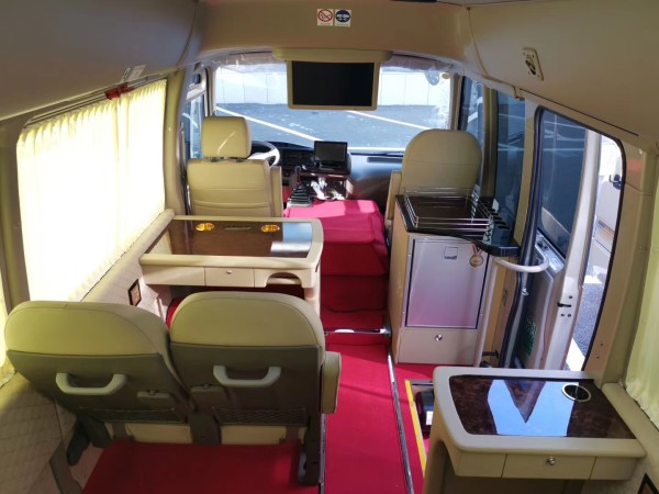 [丰田海狮考斯特4S旗舰店---原创]改装项目二地毯:一般厂家会给你两种选择,游艇木地板和航空祥云地毯,功能都很齐全,防水防火阻燃材料,一般会选择地板,因为不仅美观还比较高大上,地板的价格较贵,这就完全是凭借个人爱好了。