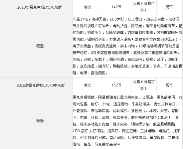 近日获悉,2018款雷克萨斯LX570港口降税出售,各版本配置价格优劣势对比,新款凌志越野本性彰显,配置功能全面介绍,外观霸气内饰豪华,纯爷们追爱车型,酬宾福利享不停,邀您来选车。