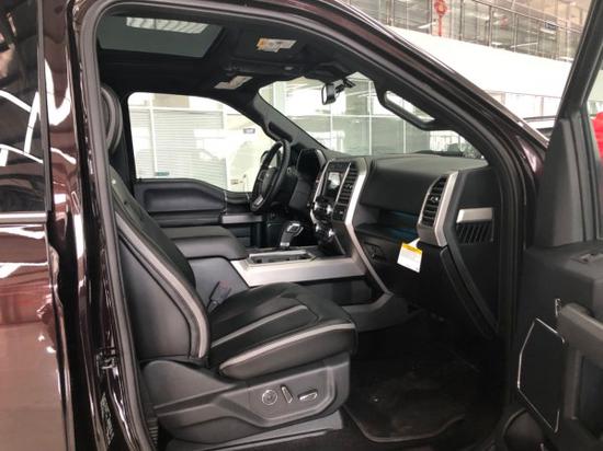 新款F150它的表面颇具动感,内饰奢华,配置富厚,同时兼具跑车的动力机能、越野车的全地形制霸本领和豪华轿车的乘坐恬静性,并且它的改装空间也很大。车内配备标准独特的皮革和布艺装饰的座椅,驾驶员侧的电动十向调节。这些座椅同时具备记忆功能。中央控制区搭配了触控式显示屏,其下方则是多媒体控制区及空调面板,采用旋钮+物理按键的组合。中控功能区域可分为三个小控制区,最上端为音响控制及导航控制,中间为收音机调节控制,最低端为空调及座椅加热控制。在内部空间的庞大基础上,福特也提供了非常具有舒适性与服务性的内饰配置。