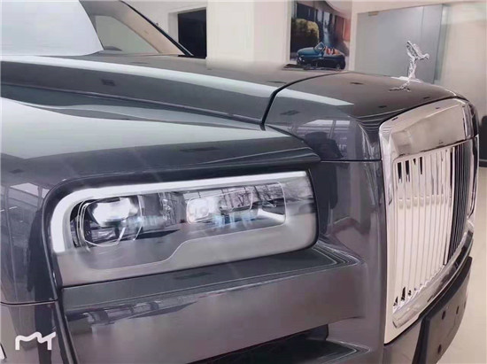 车尾部分设计则较为简约,并没有采用过于华丽的装饰。金属排气管和防撞击滑板的采用,宣示着库里南不仅仅追求设计上的奢华,动力与性能同样是它所注重的。标志性的帕特农神庙样式格栅在库里南身上也得到了传承。机盖上隆起的线条让整车的威严感更加强烈。库里南的前大灯采用平直简洁的造型设计,搭配造型别致的进气格栅,营造出外观的厚重感和威严感。同时,库里南全系标配激光大灯,夜间照射距离可达600多米。车头处屹立的飞天女神标识是全车最令人瞩目的焦点,作为劳斯莱斯亘古不变的经典元素,飞天女神标示理所应当地出现在库里南上。