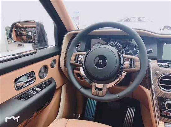 库里南的内饰遵循了劳斯莱斯一贯的设计风格,造型经典复古但不失科技感,大量实木饰板的采用,提升了内饰的档次感。而大面积真皮包裹的设计,则成功的营造出奢华舒适的内饰氛围。仪表盘的设计较为古朴,内部指针清晰可见,外圈还配备有劳斯莱斯珠宝般的装饰环。方向盘沿用了经典的三辐式造型,但是整体设计更加小巧、厚实,并且内部包裹有可加热的柔软材质。