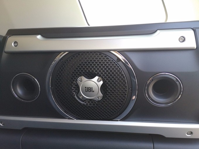 丰田FJ酷路泽在尾部的保险杠上设置了 深色的踏板。仪表板采用简单而有力的直线条,粗壮的水平线条和垂直线条相交,形成了平面与弧线融合的美感立体效果,给人一种时尚而粗犷的感觉。