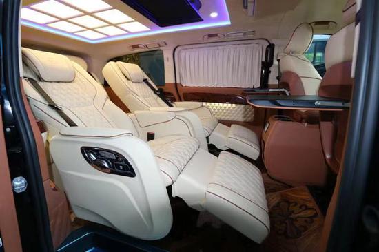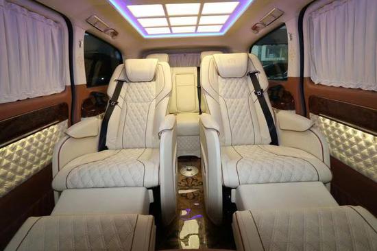 2018款奔驰Metris 2.0T汽油版改装版配置:整车内饰采用Alcantara面料打孔真皮配以钢琴烤漆实木处理,外观方面:V-class中网+实心标; 前后车身同色AMG 大包围带LED 日间行灯; 双侧电动门LED远近光一体式大灯带蓝色恶魔眼; 集成转向灯后视镜; 行李架、整车镀铬装饰; 脚踏板、镀铬防擦条; 大包围不锈钢迎宾踏板。