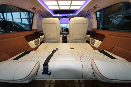 配置:7座,中文导航,中央竖屏式大屏导航,中央隔断带升降液晶电视、全车高级音响、全新升级版航空座椅,第二排通风加热按摩可旋转座椅,第三排电动可放平座椅,双侧电动门,高级氛围灯式车内顶,光亮式脚踏,倒影,升级版全车镀铬套件及镀铬轮毂 。