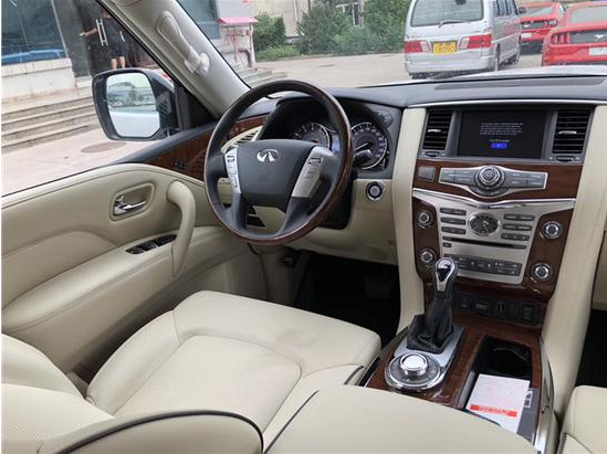 [配置]:QX80配置 5.6排量v8 398马力 7速 全时四驱 多功能方向盘 一键启动 无钥匙进入 主驾座椅记忆 主副8项电动座椅 腰部支撑 触摸大屏 自动空调 钟表 座椅加热 天窗 自动防炫目后视镜 桃木内饰 电动尾门 冰箱 后排自动空调 后娱 第三排座椅电动收放 前后电眼 led大灯 led日行灯 自动大灯 22轮 环影 胎压 8气囊 定速巡航 行李架 方向盘电动调节 bose音响