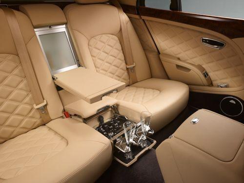 宾利慕尚加长版后排则是此车的最大看点,当然也是最佳乘坐位置。两张独立的“航空级”座椅,采用行业内支撑性最强的搁脚板,中控台纵贯座舱,其手工制作的精美饰面巧妙地容纳了诸多存储功能,从而提升了后排乘客的舒适性。中控台上配置了一系列可操控功能,用于控制座椅加热和通风、天窗、车窗电动窗帘等。当需要工作时,可以将折叠餐桌从其中伸展出使用。