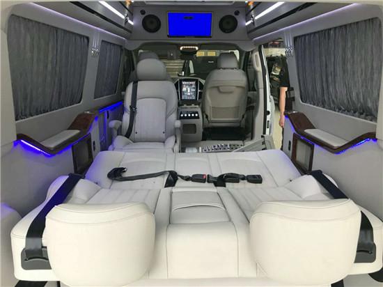 长宽高5370*1928*2050mm,纵向空间大,前后舱未隔断,全车7座设计:2驾驶座+1福祉座+1独立座椅+3人连排沙发(可电动变床),一家人出行,均享有独立的腿部和头部大空间。