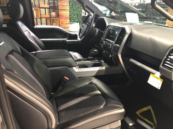 18款福特F150白金版皮卡内饰设计依旧遵循大气方正的风格,色调上与大地色外观相得益彰,新车配备标准独特的皮革和布艺装饰的座椅,驾驶员侧的电动十向调节,这些座椅同时具备记忆功能,方向盘看起来非常豪华,四辐式握起来非常舒服,福特F150白金版皮卡可以根据行程调整阻尼,在悬挂行程较短的情况下,避震软以保证平稳性,驾乘舒适性堪比很多中级豪华轿车。