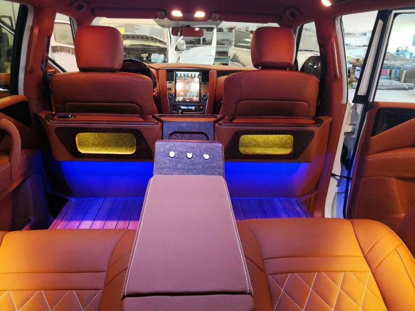 由于生产的汽车出厂一般都是标配的座椅,从舒适度和样式来说都不是非常令人满意。舒适的座椅开车会减少驾驶疲劳,而新颖漂亮功能齐全的航空座椅样式、不拘一格的内饰结构、配备的电器齐全,能保持愉悦的心情和随心的工作或交谈,所以现在改装座椅已经成为了一种趋势。后排改成4座加装2个航空座椅 并且加装木地板 中央扶手杯架