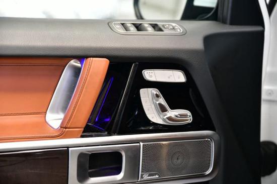 2019款奔驰G550车内采用深色调与桃木装饰,黑色真皮运动座椅非常舒适,方向盘以高档真皮包裹装饰,触感极其细腻。配有桃木装饰的操控台,稳重大气,同时提高了整体的质感。各种功能按钮应有尽有,丝毫不次于豪华轿车的功能;后排空间非常宽敞,且后排的座椅可以折叠,以得到更宽敞的储物空间。