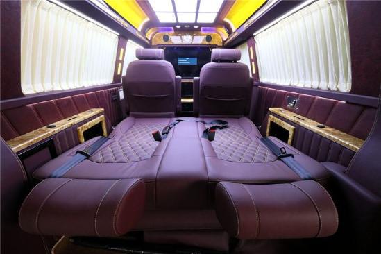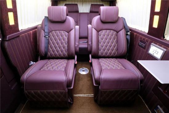 大众T6后舱内饰整体高贵紫色为主要的色彩基调,全车7座全隔断设计,隔断的豪华吧台设计能让你的使用体验提升一个档次,32寸可升降电视+殿堂级环绕音响以及DVD公放加持,构建完美的影院级视听娱乐体验,丰富旅途生活,非常适合做商务接待,也适合家庭出行。