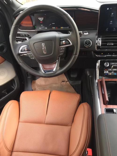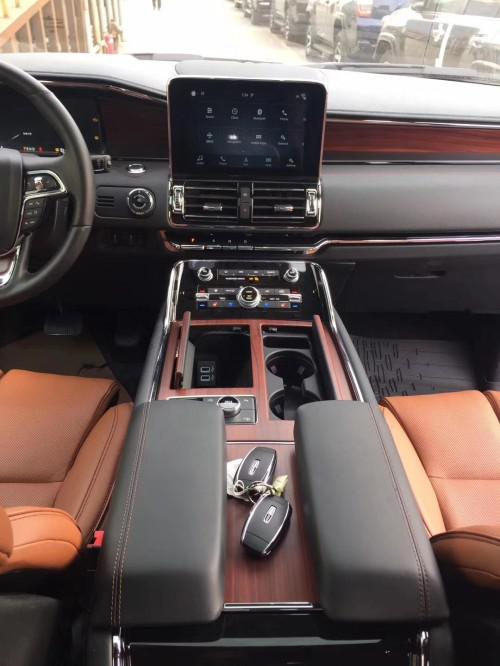 不过,遗憾的是第二排座椅并不能前后移动,所以第三排的腿部空间拓展性差一些。另外,领航员第三排座椅可以在行李厢进行电动放倒和立起来,方便了有大体积行李时的装载。电动尾门的按键在左侧,而非尾门上,这会让刚接触的人有些不知所措19款林肯领航员3.5TT 7座精雕细琢的内饰, 结合了美国胡桃木和高级真皮材料、丝光镍饰件与白色发光二极管等组合一起,营造出一个豪华、浪漫而又极具现代感的车内环境。方向盘和轿车一样的轻盈,周身散发出来的尊贵气息,让人肃然起敬。