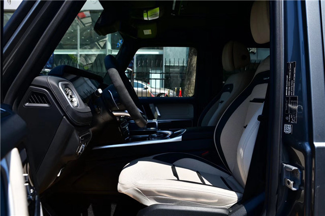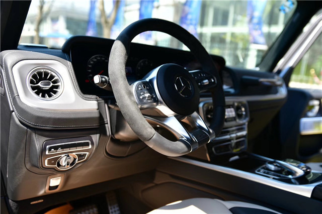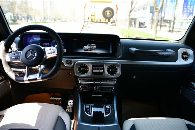 内饰方面其实才全新一代G级最大的变化。新车换上了奔驰最新家族式的内饰设计,这无疑让G级拥有了旗舰级应有的豪华感,不过经典的副驾驶席扶手和三把锁的开关键依旧延续了经典设计,并设置在中控台最显眼的位置。其中双12.3英寸高清屏,虚拟仪表盘与中控液晶屏融为一体,视觉上形成一个宽屏驾驶舱,中部的涡扇式空调出风口也颇具设计感,还大量采用了皮革的包覆。另外,新一代G级还对驾乘空间也进行了优化。