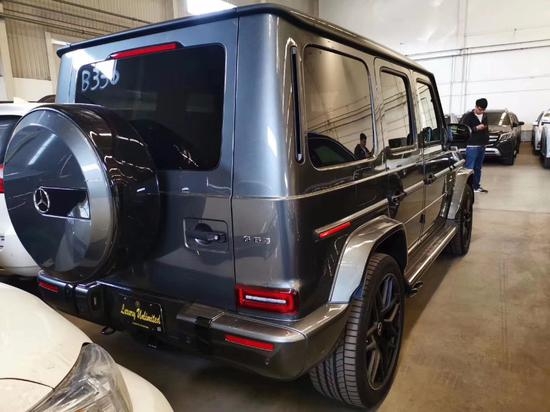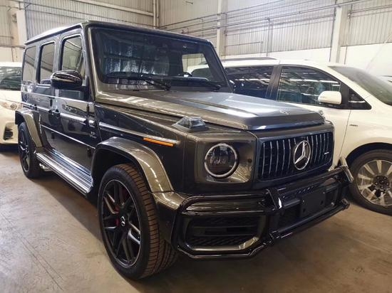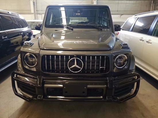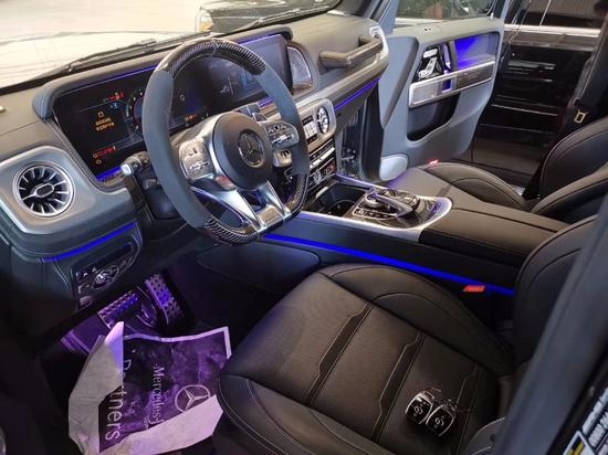 19款梅赛德斯奔驰G63配置:几何多光速LED大灯,64色LED环境照明,加热前排座椅,记忆前排座椅,AMG性能排气系统,AMG高性能制动系统,红色刹车卡钳,60/40折叠后排座椅,加热后座椅,电动天窗,隐私玻璃,三区空调,空气净化系统,加热挡风玻璃,电动折叠加热外后视镜,不锈钢侧踏板,三个电源插座,3辐方向盘,AMG Nappa皮性能方向盘,12.3英寸高分辨率中央显示屏,触摸板COMAND系统,COMAND导航,免提蓝牙连接,Burmester环绕音响系统,双USB音频端口,SiriusXM Radio,增强语音控制,蓝牙音频,SD卡读卡器,Apple CarPlay,Android Auto,三个可100%锁定差速锁,永久全轮驱动,碳纤维门枕侧方,碳纤维副驾驶把手,碳纤维杯架盖,碳纤维仪表下方,黑色前保护杠,黑色轮毂,黑色外后视镜,黑色备胎罩,黑色大灯,黑色转向灯,黑色保险杠装饰,22黑轮,360°环影,designo石墨灰金属漆,碳纤维方向盘,12.3宽屏驾驶舱,升级最高速度上限,红色卡钳。
