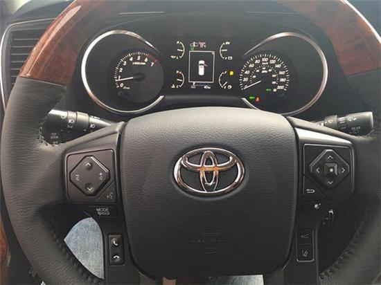 18款丰田红杉5700 V8加版顶配主要配置:新款镀铬中网,新款大灯带LED日间行车灯,中置雷达测局,20轮,巡航定速,车道偏离辅助,底盘升降,2/4驱切换,吸顶DVD,前座椅通风加热,二排座椅加热,第三排电动座椅,三区空调及自动恒温空调,桃木方向盘,导航屏,倒车影像,前后电眼,4CD,JBL高保真音响,行政7座,脚踏板,行李架。国五环保。