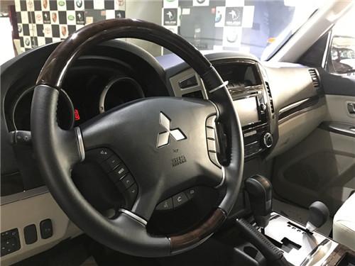 进口18款帕杰罗V97内饰设计简约平实,大面积银色的装饰面板、高亮度银色外环仪表盘、上深下浅双色调处理的中控,局部使用的深色桃木材质。进口三菱帕杰罗方向盘采用三幅真皮多功能方向盘,并集成了具有定速巡航控制键,配合运动轻便感十足的拨片换挡杆,在操控便捷的同时极大地提升了驾驶乐趣。