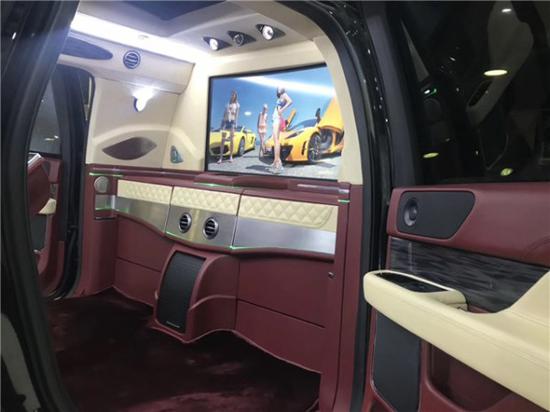 林肯领袖一号内饰电器:32寸液晶电视,蓝光索尼DVD,BOSE音响,对讲机和柚木地板,我工厂改装好的内饰颜色还有各种颜色。