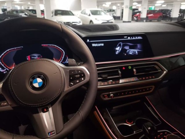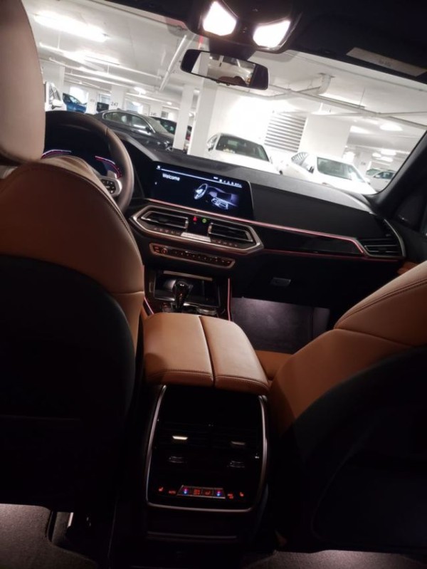 2019款新一代宝马X5内饰设计更高档,采用三辐式多功能方向盘设计,仪表盘跟宝马X7基本一致,采用无框后视镜设计,中控台底部还配备了无线充电功能。2019款新一代宝马X5中控功能键盘也重新设计,中控出风口中间还配备了一块小尺寸液晶屏,上面显示一些空调温度和风量。出风口两侧的风量滑轮更精致。2019款新一代宝马X5可选配全景天窗,以及Sky Lounge LED照明灯,采用玻璃天窗材料。