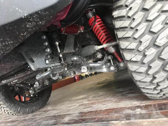 18款丰田坦途刚烈的5.7升V8发动机仍能爆发381匹马力和401磅英尺的扭矩,匹配的也是同一款本身表现就足够优秀的6速自动变速器。最大的明星是我们之前提到的长行程(2.5英寸)Bilstein外挂储油箱式减震器:除了能在悬架剧烈跳动时保持减震油液不过度高温,外挂式储油箱减震器也能令减震器内部结构变化多端,以适应更长的减震行程。