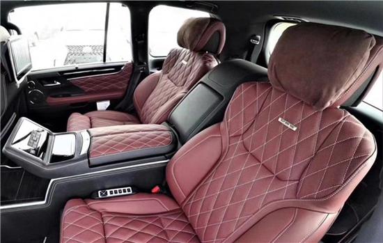 19款中东版雷克萨斯LX570 MBS四座 配置:黑色外后视镜,独立4座控制、MBS多轮廓座椅(菱形格子走线)、金属漆、黑色前中网、前后大包围、射灯、21轮、遥控启动、车身防擦条、流水式转向灯、带运动底盘、运动模式、换挡拨片、冰箱、天窗、智能卡、电眼、环影、后娱、底盘升降、前座椅通风加热按摩、半苯胺真皮、导航、桃木多功能方向盘、桃木内饰、铝制行李架、航空照明脚踏、LED 氙灯 大灯清洗、迎宾灯、四区空调、电尾门、ACC自适应巡航、雷达测距、后座椅通风加热按摩、后排储物格、车道保持、二排遮阳帘、抬显、马克莱文森音响。
