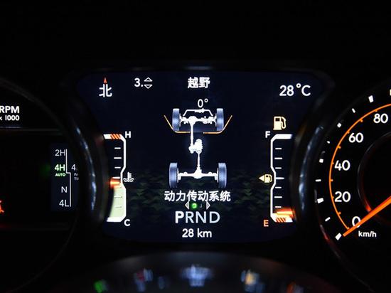 全新一代牧马人内饰采用对称式设计,细节处加入了镀铬装饰条以及白色缝线。中控台上配有四个圆形空调出风口,中间8.4英寸的中控液晶显示屏幕装载了Jeep第四代Uconnect多媒体系统。新车新增了一套名为Selec-Trac四驱双速分动箱系统,可以利用4H AUTO挡,通过前轴智能分离技术实现两驱和四驱的切换。