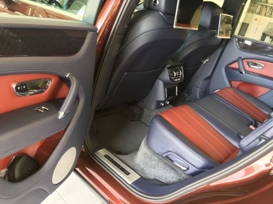 双色座椅靠背的极简刺绣设计,与车身外部徽章一脉相承,内外呼应。深色绒面地毯亦采用对比色包边设计,为内饰格调倍添精致细腻之感。仪表板中央的百年灵车载计时器饰以珍珠母贝盘面,并精心镶嵌钻石。该车型标配前排座椅舒适套件(Front Seat Comfort)、钻孔合金运动踏板以及脚部支撑。