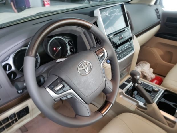 2019款丰田酷路泽4000方向盘的造型和老款一样依旧是个“大面包”,经过桃木饰板的点缀的确提升了视觉档次,中控台最左端集合了不少按钮。操控台没有过于繁杂的操控按钮,多功能桃木方向盘方便了驾驶员的操控,轻松驾驶。