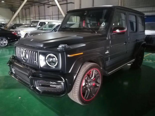 19款奔驰G63配置:19款全球限量G63 Edition1 9速AMG变速箱 黑色AMG独家内饰 干椒红碳纤维饰件 红色安全带 可调阻尼底盘 主动车道保持 主动刹车辅助 AMG红色卡钳 雷达测距 柏林之声3D音响 电动天窗 风挡玻璃加热 超细纤维内饰(鹿皮顶) 64色氛围灯 360环影 停车辅助 几何多光束LED大灯 AMG暗夜包 增强座椅舒适包(多轮廓座椅,通风按摩) AMG高性能Nappa真皮方向盘 AMG驾驶包时速240公里更加运动和灵活的驾驶体验 选配增值包 黑曜套件[外后视镜、备胎环、保险杠、外防黑色护栏] 有色指示灯、头灯和尾灯 22“AMG轮毂(哑光黑与红色AMG外部运动条纹) AMG高级内饰黑钻石缝线与红色拼接 前座与按摩、加热、通风前座 AMG性能方向盘和仪表盘 黑色Nappa皮革方向盘与红色拼接, 地垫黑色与AMG标记和红色拼接。