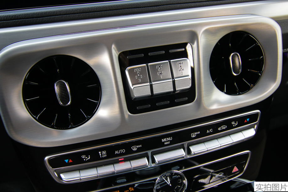 19款奔驰G500中控大屏和仪表部分也采用了科技感满满的双12.3寸巨幕,空调出风口也改为重新设计的炮筒式。豪华感和科技感大大提升。19款奔驰G500三个完全锁止0-100%差速锁和低速放大挡刚性后桥组合的双横臂独立悬架的前桥。