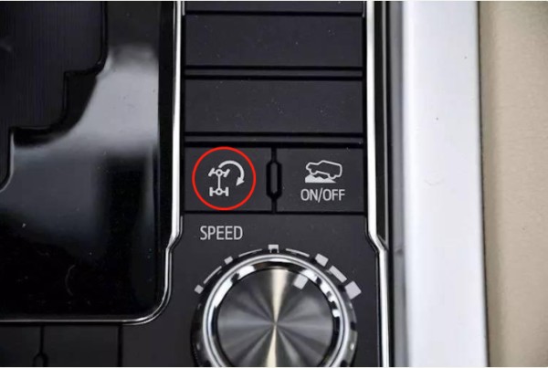 然后打开中央差速锁,打开后中央差速器会在仪表盘左下方有符号显示。(注意!显示有两种情况:1。打开后,符号是长亮状态,表示正常工作;2。打开后,符号是闪烁状态,这时蠕行模式不可用,需要将车前后移动,直至符号正常显示)。