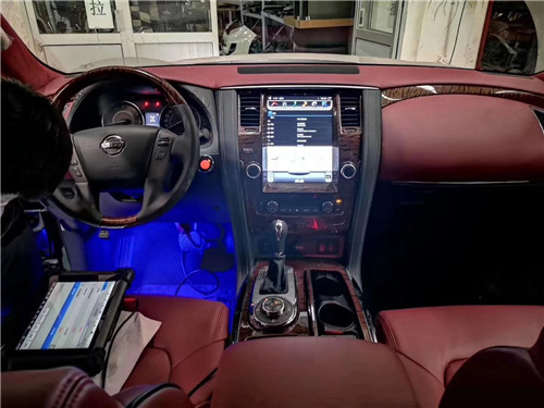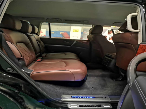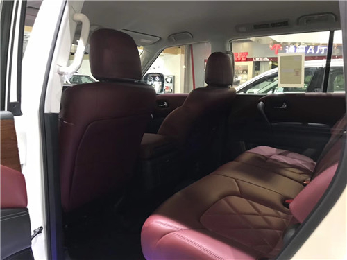 内饰整体风格豪华,真皮座椅、DVD娱乐、上下坡以及胎压监测等装备也都悉数出现。日产尼桑途乐内饰材质也更加的考究,使用了皮革,铝以及木纹样条作为点缀。中控部分的设计比较具有豪华感,标准日系豪华车的风格,BOSE音响是很多中高端车所选用的,音响效果不会让你失望。车内后视镜就是2018款另外一个有意思的升级,这块后视镜带有液晶屏幕,可以播放尾门上方新增那只后视摄像头的图像。这为倒车提供了更好的视野。仔细看拍摄的图像,图像是跟手机自拍一样的处理方式,视频中的文字是反向的,模拟了镜子成像的效果
