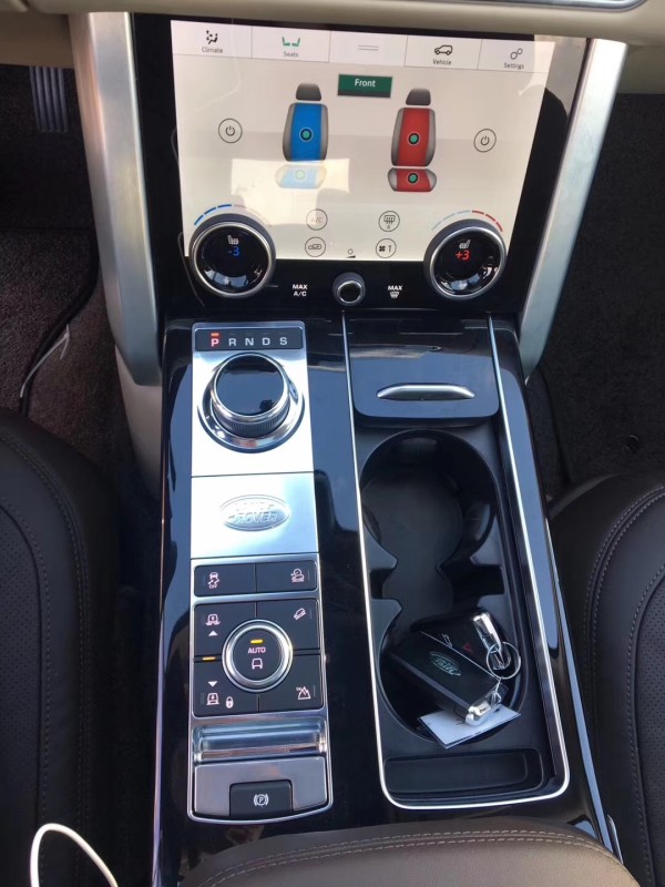 2019款全新路虎揽胜行政8速手自一体变速箱,车身尺寸4999*1983*1867mm,最高车速280,百公里加速6.5s,综合油耗10L,轴距2922mm,油箱容积105L,最大功率250,最大功率转速6500,最大扭矩450,最大扭矩转速3500-5000,新车采用非常炫目的隐藏式换挡杆,在发动机启动后,换挡旋钮可自动升起。