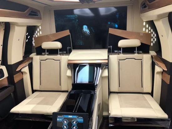 超级林肯领袖一号的电器设备十分的齐全,无论是豪华吧台还是反向隐藏座椅都有,可升降的电视机隔断,让您的乘坐室更有隐私感。简单大气美观的中控台,让您坐在航空椅上就能控制到整个后舱的设备,科技感十足。林肯领袖一号商务车整体驾驶舱非常简洁、大气,中控台有一个超大的立式显示屏,并且第一排和第二排头枕后方共有四个超大的显示屏。采用桃木搭配设计,高贵典雅,车门拉手按键力度适中,在细节各处都体现了一个豪华车的品质。林肯领袖一号宽敞的乘坐空间足以让您尽享总统般的待遇。