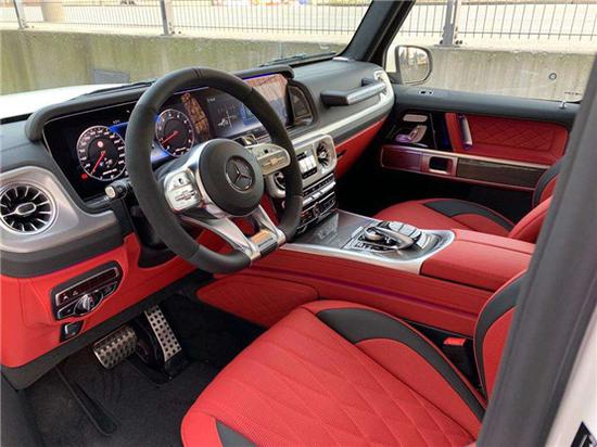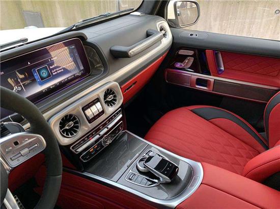 全新G63内饰方面,新G63保留了新G500的整体设计,除配色差异外,新车还换装了全新造型的平底式AMG运动方向盘,其两侧配以打孔皮质包裹,下部镀铬装饰的造型也与新G 500明显不同,看上去十分战斗。此外,全液晶仪表盘+中控大屏的双12.3英寸屏幕设计在新车上也没有缺席,营造出了浓郁的科技感。