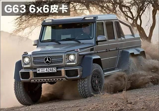 G63 6X6皮卡,是奔驰品牌有史以来最强悍的越野怪兽,6轮驱动,5把差速锁,加上来自“越野之王”乌尼莫克的门式车桥,可以说所向披靡。