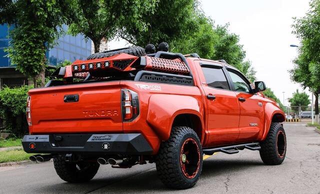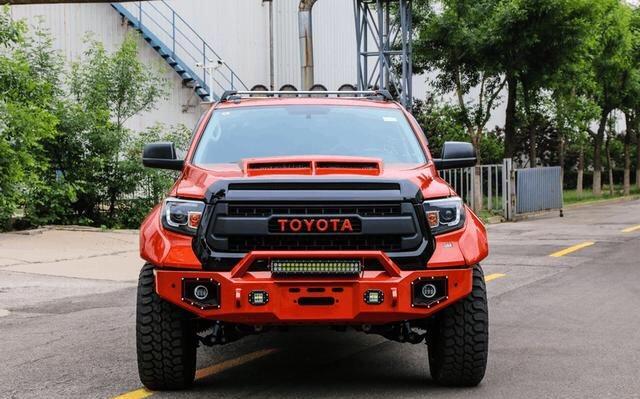 作为丰田旗下的皮卡车型,在北美市场的保有量非常大,众所周知,一个车厂如果想要在北美插足皮卡市场,福特F系,道奇Ram,以及雪佛兰silverado等等美系皮卡必然是绕不开的强大对手。丰田坦途却在北美市场站稳了脚跟,可见其产品力的优秀。在国内,坦途也是很多皮卡改装车爱好者的理想素车,其改装潜力很大,改装后的效果也非常不错。今天为大家带来的这款车是在坦途TRD的基础上改装而成,作为丰田御用改装厂Toyota Racing Development生产的车型,实际上,TRD版本身就比普通版的坦途要更具性能味,而改装后进一步将各种细节发挥到了极致,一起来看看。