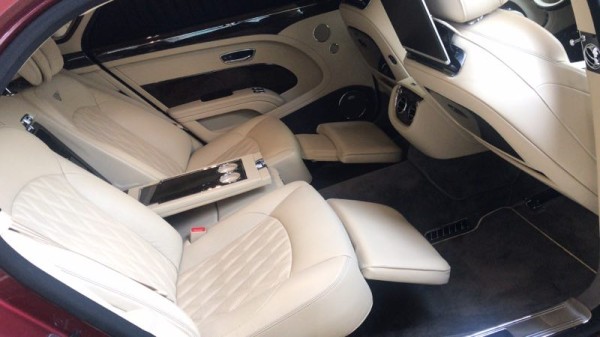 2018款加长版慕尚配置:宝石红/奶黄色配海豚灰 对比刺绣,穆勒包配抛光轮(21寸抛光轮,穆勒定制踏板,铸币式车门把手,前后羊毛地毯(附带标准加长地毯),高级菱形座椅,4座位均配有宾利徽章刺绣,后侧化妆镜饰面环绕), 宾利娱乐包带地图(宾利影院--双10.4寸自动折叠平板电脑带地图,Naim高级音响),优选包(小飞人,宝石燃油盖,遥控车库门开启装置,城市雨伞2把,泊车钥匙等),舒适包加长版(航空座椅,座椅按摩通风,舒适头枕,高级阿尔卡塔纳鹿皮头枕垫),明亮不锈钢门柱装饰,明亮不锈钢矩阵式进门气格栅,车门内侧上衬板带有宾利飞翼徽标及镀络饰条,暗色伯尔核桃木实木饰条,钻孔运动踏板,穆勒定制带照明功能酒柜和宾利水晶玻璃香槟杯及醒酒器,后排小桌板,4辐真皮方向盘,内饰情绪灯,角落侧视摄像头,备用胎!