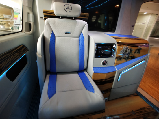 2019款进口奔驰V250商务房车采用了4+2隐藏6座式格局,2驾驶座+2航空座椅+2吧台电动隐藏座椅。在航空座椅中间设置了舒适豪华的扶手,以真皮和木纹面板修饰,嵌入了后舱的操控系统,方便快捷。座椅的多项调节,全身按摩,腿托也具备延展功能可以通过扶手处可按键来控制。