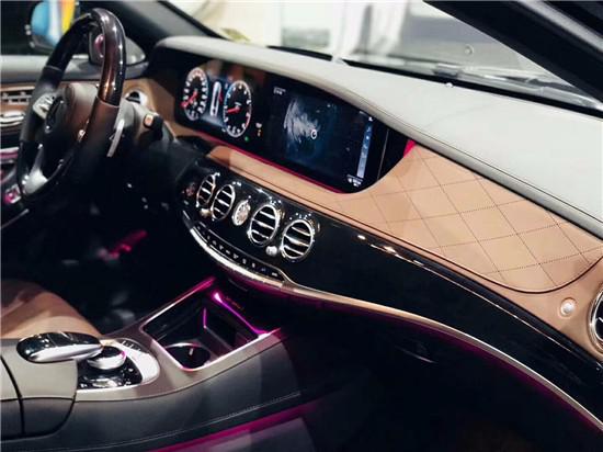19款迈巴赫S560内饰风格成熟典雅,随处可见的真皮材质和镀铬装饰点缀的十分精致,经典独特的双12.3英寸仪表显示屏和多媒体显示屏设计新颖,显示内容丰富清晰。柏林之声音响装配在这台豪华车上,在合适不过了。