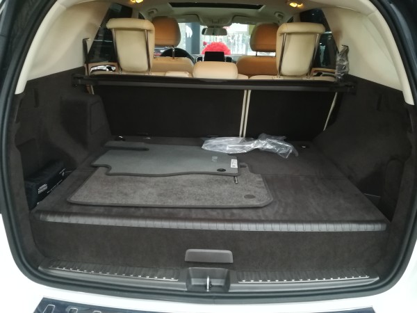 奔驰GLE550e后备箱的空间只有站在尾门处的时候才能感受到,在第三排座椅打开的时候,仍然能够放置3个大行李箱,如果将第二排和第三排座椅都放倒,那么就是一个不折不扣的双人床的尺寸