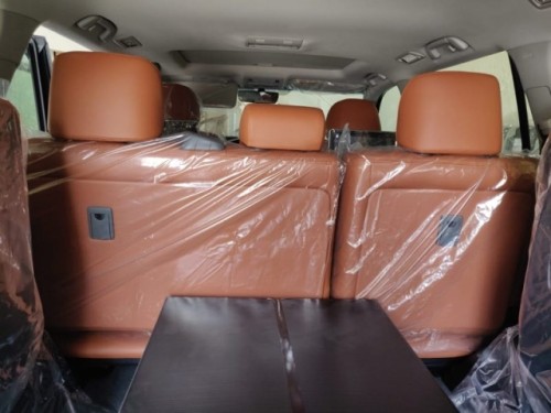 内饰方面:无钥匙进入,一键启动,桃木内饰,多功能方向盘,巡航定速,前后独立空调,CD,二三排空调出风口,车载气泵,液晶仪表盘,天窗,冰箱,主驾驶电动座椅,七座绒布座椅,12气囊,全时四驱。