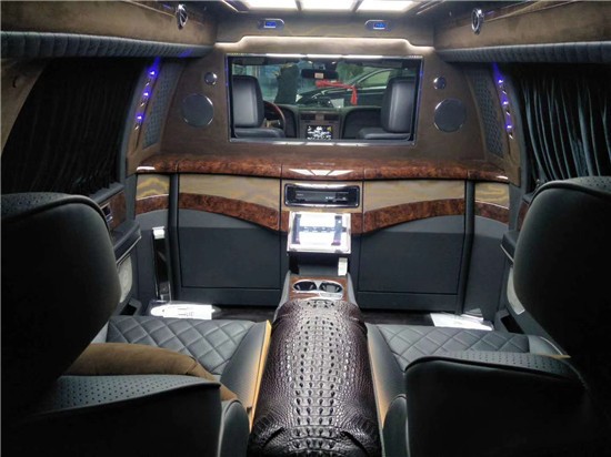 踏着柚木地板进入林肯领袖一号加长车的乘客舱,坐在首长座椅上享受水牛皮和厚实填充物带来的舒适感。通过首长座椅中间的触控屏,控制车厢电子设备和座椅配置的功能,比如,隐藏在吧台处的秘书座椅、隐藏式的桌板、三星升降液晶电视屏、BOSE音响控制、前置天窗。
